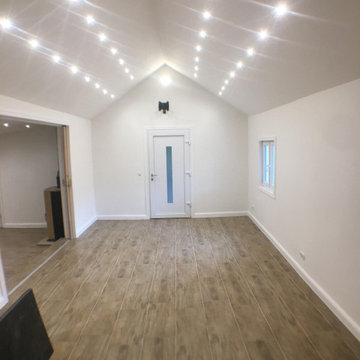 This property was transformed from an 1870s YMCA summer camp into an eclectic family home, built to last for generations. Space was made for a growing family by excavating the slope beneath and raising the ceilings above. Every new detail was made to look vintage, retaining the core essence of the site, while state of the art whole house systems ensure that it functions like 21st century home.