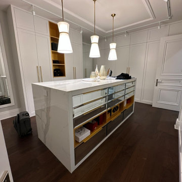 Boasting views of the Museum of Natural History and Central Park, the Beaux Arts and French Renaissance style building built in 1900 was once home to a luxury hotel. Over the years multiple hotel rooms were combined into the larger apartment residences that exist today. The resulting units, while large in size, lacked the continuity of a single formed space. StudioLAB was presented with the challenge of re-designing the space to fit a modern family’s lifestyle today with the flexibility to adjust as they evolve into their tomorrow. Thus, the existing configuration was completely abandoned with new programmatic elements being relocated in each and every corner of the space. For clients that are big wine connoisseurs, the focal point of entry and circulation lies in a 400 bottle, custom built, blackened steel and glass, temperature controlled wine cabinet. The once enclosed living room was demolished to create one main entertaining space that includes a new dining area and open kitchen. Hafele bi-folding pocket door slides were used in the Living room wall unit to conceal the television, bar and display shelves when not in use. Posing as kitchen cabinetry, a hidden integrated door opens to reveal a guest bedroom with an en suite bathroom. Down the hallway of wide plank ebony stained walnut flooring, a compact powder room was built to house an original Paul Villinski installation of small butterflies cut from recycled aluminum cans, entitled Mistral. Continuing down the hall, and through one of the walnut veneered doors, is the shared kids bedroom where a custom-built bunk bed with integrated storage steps and desk was designed to allow for play space and a reading corner. The kids bathroom across the hall is decorated with custom Lego inspired hand cast concrete tiles and integrated pull-out footstools residing underneath the floating vanity. The master suite features a bio-ethanol fireplace wrapped in blackened steel and integrated into the Tabu veneered built-in. The spacious walk-in closet serves several purposes, which include housing the apartment’s new central HVAC system as well as a sleeping spot for the family’s dog. An integrated URC control system paired with Lutron Radio RA lighting keypads were installed to control the AV, HVAC, lighting and solar shades all by the use of smartphones.