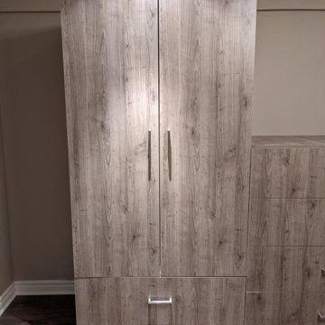 Boasting views of the Museum of Natural History and Central Park, the Beaux Arts and French Renaissance style building built in 1900 was once home to a luxury hotel. Over the years multiple hotel rooms were combined into the larger apartment residences that exist today. The resulting units, while large in size, lacked the continuity of a single formed space. StudioLAB was presented with the challenge of re-designing the space to fit a modern family’s lifestyle today with the flexibility to adjust as they evolve into their tomorrow. Thus, the existing configuration was completely abandoned with new programmatic elements being relocated in each and every corner of the space. For clients that are big wine connoisseurs, the focal point of entry and circulation lies in a 400 bottle, custom built, blackened steel and glass, temperature controlled wine cabinet. The once enclosed living room was demolished to create one main entertaining space that includes a new dining area and open kitchen. Hafele bi-folding pocket door slides were used in the Living room wall unit to conceal the television, bar and display shelves when not in use. Posing as kitchen cabinetry, a hidden integrated door opens to reveal a guest bedroom with an en suite bathroom. Down the hallway of wide plank ebony stained walnut flooring, a compact powder room was built to house an original Paul Villinski installation of small butterflies cut from recycled aluminum cans, entitled Mistral. Continuing down the hall, and through one of the walnut veneered doors, is the shared kids bedroom where a custom-built bunk bed with integrated storage steps and desk was designed to allow for play space and a reading corner. The kids bathroom across the hall is decorated with custom Lego inspired hand cast concrete tiles and integrated pull-out footstools residing underneath the floating vanity. The master suite features a bio-ethanol fireplace wrapped in blackened steel and integrated into the Tabu veneered built-in. The spacious walk-in closet serves several purposes, which include housing the apartment’s new central HVAC system as well as a sleeping spot for the family’s dog. An integrated URC control system paired with Lutron Radio RA lighting keypads were installed to control the AV, HVAC, lighting and solar shades all by the use of smartphones.