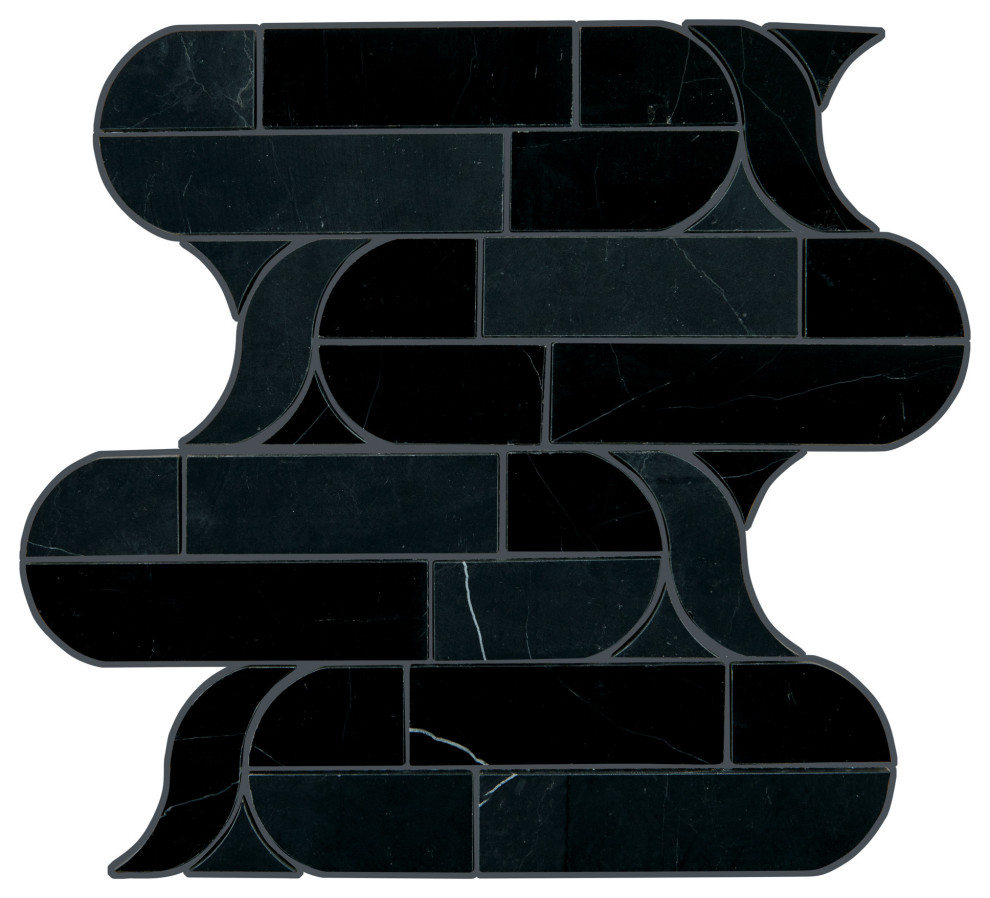 Photo from DaltileAnother geometric offering from Pietra Divina’s Nero Marquina marble selection has a cupola mosaic of...