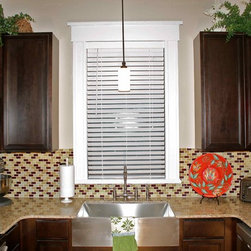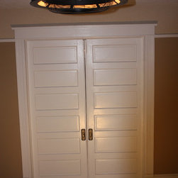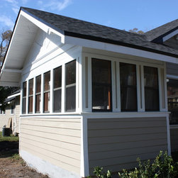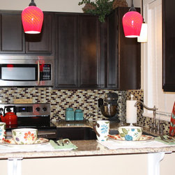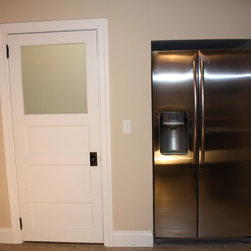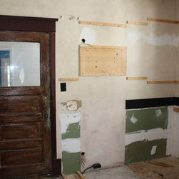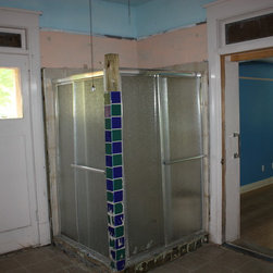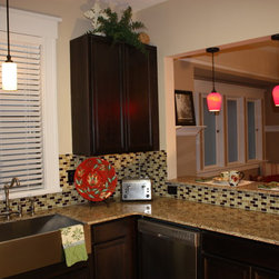 1920's Arts and Crafts restoration with a complete kitchen tear-out. Italian tile floors, granite counter tops, glass tile backslash, stainless appliances and a Ticor stainless steel apron front farmhouse sink.