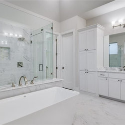 This beautiful custom home built by Crescent Estates offers the timeless essence of a painted brick exterior. Open family room, dining & chef's kitchen make this home perfect for entertaining. A lovely master suite includes his & her vanities, free standing tub & large walk-in closets. The covered patio opens up to the backyard and spacious greenbelt. The hardwood floors, beautiful Entrada Iron front door & designer lighting will have you wanting everyone over for dinner. 1500 St Peter is in an up and coming location of North Texas!