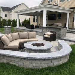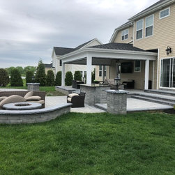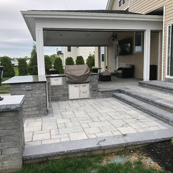 Robbinsville, NJ - Patio with outdoor kitchen and attached roof.