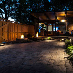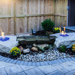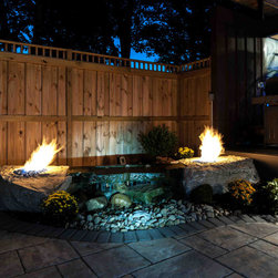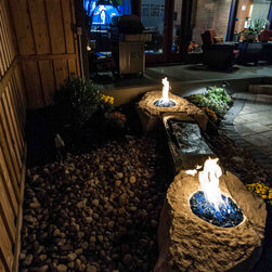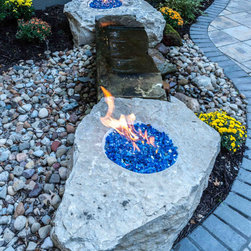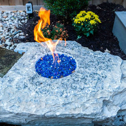 GLASS FILLED FIRE PIT - BENCH - LOUVERED SEATING WALL FIRE PLACE