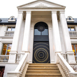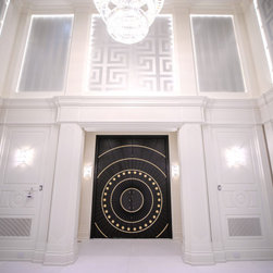 Elevate your entryway with a striking door pattern featuring luxurious black and gold accents. Make a bold statement and add a touch of elegance to your home's exterior.