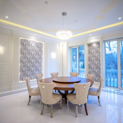 Indulge in elegant dining experiences with our design featuring a charming round table complemented by French windows. Embrace natural light and create a cozy atmosphere for memorable meals with loved ones.
