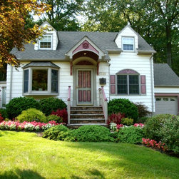 A new portico, brick steps, stair railings and landscaping gave this 1950's cape cod some victorian charm and curb appeal.