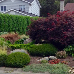 The client wanted to create a garden bed to incorporate the existing Japanese maple in a cohesive way and to remove more of the lawn area from the garden.