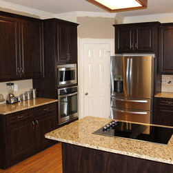Dark Wood Cabinets with Granite Countertop Kitchen