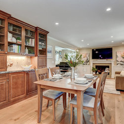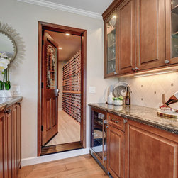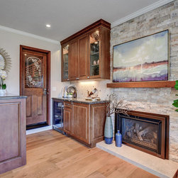 By moving the oddly placed dining room allowed for a bar area and wine room. Good design and organization will help their wine room looking good and their collection safe. Adding a wine storage in the living room was not only a unique decor idea, but also keeps wine easily accessible when entertaining guests.