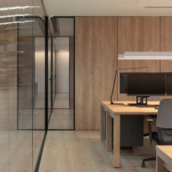 En el núcleo de este proyecto encontramos una premisa: el silencio es necesario, incluso (más) en un entorno industrial. Para conseguirlo, la diseñadora no solo se vale de la distribución, sino que aún la elección de materiales y la iluminación para crear un entorno donde trabajar es también disfrutar.