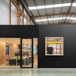 El proyecto partió de crear unas oficinas que se pudieran comunicar a nivel visual con el taller. La propuesta nació de un cubo gigante, con el propósito de albergar tres cubículos que facilitarán esta conexión.
