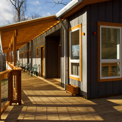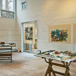 Inside the artists' studios with high sloped ceilings and clerestory windows