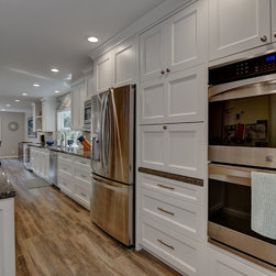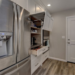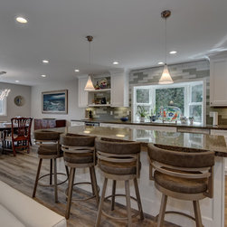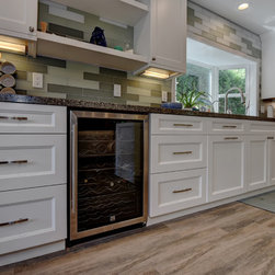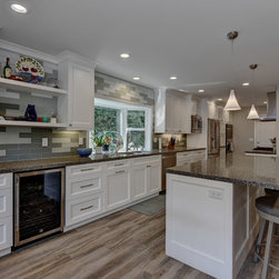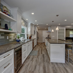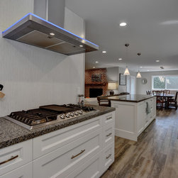 In this modern craftsman style home the existing kitchen was a very small galley kitchen, and was separated from the rest of the house. The client wanted an open dining room, and a kitchen that was part of the open floor plan that could be used for entertaining.