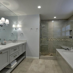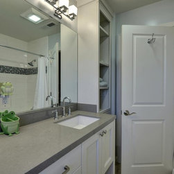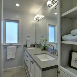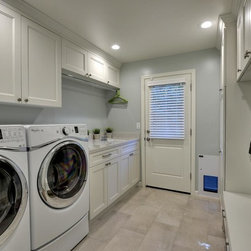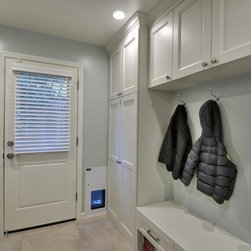 One must appreciate the subtlety and versatility that modern gray hues bring to this Los Altos Remodel. The luxurious soaking tub and walk in shower work together to create a harmonious and inviting atmosphere in this new tranquil primary bathroom. It’s a testament to the power of simplicity in creating spaces that are not only beautiful but also feel like a true reflection of those who inhabit them. Appliances, custom storage cabinetry, a doggy wall entrance, deep sink, hooks and a hanging rod, these pieces act as a statement of understated luxury, inviting you to sink into this mudroom laundry room combo.
