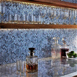 The Novelty Lapis Herringbone Glass Mosaics by Glazzio Tile will turn your ordinary kitchen into an upscale beauty!
