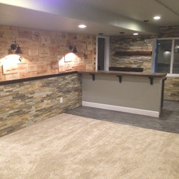 Stacked Stone Basement Bar