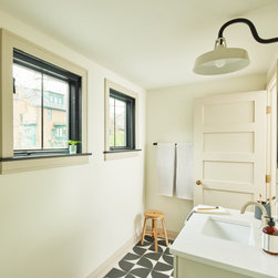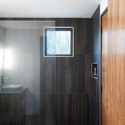 Pella Architect Series - Contemporary fixed and awning wood windows featuring staining and Saldo fold-away crank.