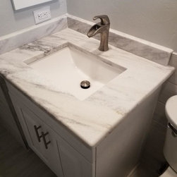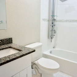 Modern Grey Bathroom with Barn-Style Glass Doors
