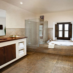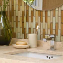 Beautiful stone by Jeffrey Court used in this Des Moines bathroom. Created by Woodharbor Kitchen and Bath.