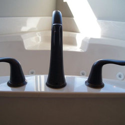 Rubbed bronze plumbing fixtures.