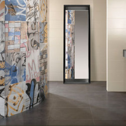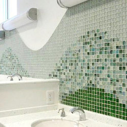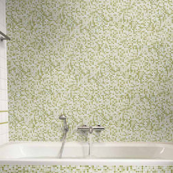 white ceramic tile with green glass mosaic