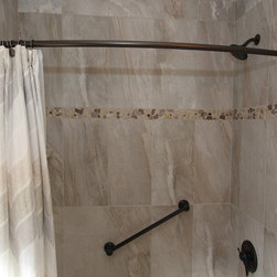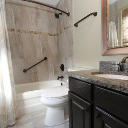 Bathroom makeover. New tile and counters. Grab bar.