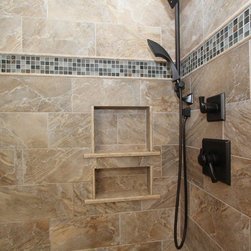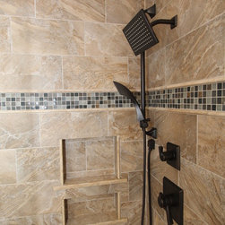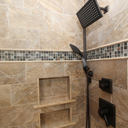Master bathroom makeover. Great tile and fixtures.