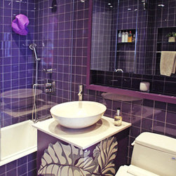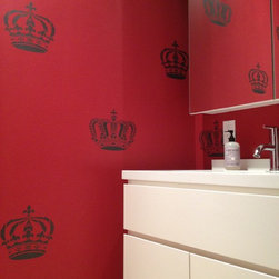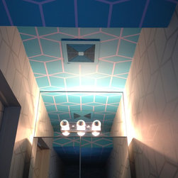 Bathroom: Custom painted wall graphics creates a playful illusion of depth.