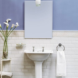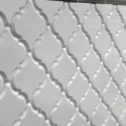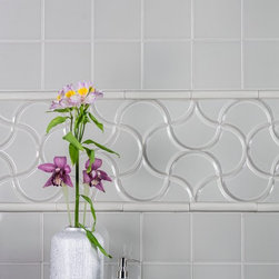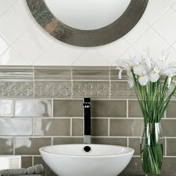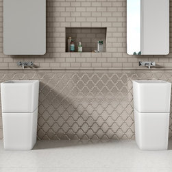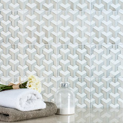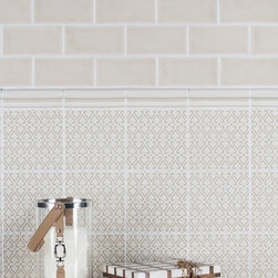 Adex Studio Beveled white arabesque tile surrounded by subway tiles....simply elegant.