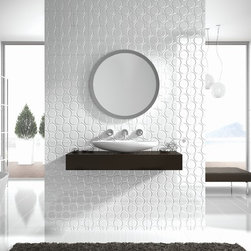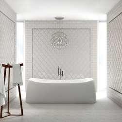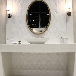 Adex tiles Diamond pattern in flat and pillowed white create dimension and interest without needing any color.