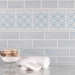 Adex Ocean Sand Dollar crackle 3x6 subway tile with liner and 6x6 Persian deco.