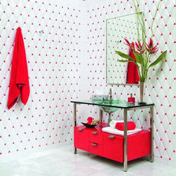 Adex Diamonds Pillowed White tile with Red Sphere accent.