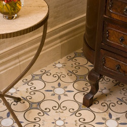 Polished Crema Marfil with dainty rose trellis borders enhance this feminine young ladies bathroom.