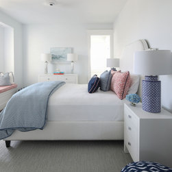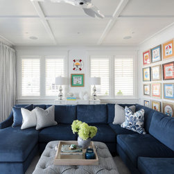 Blue & white family room overlooking bay