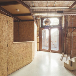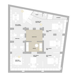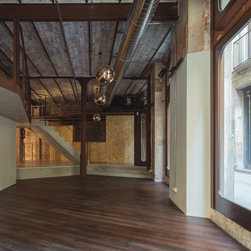 Con el objetivo de convertir la planta baja en concept store y showroom y la planta inferior en oficina de diseño, la intervención espacial consiste principalmente en recuperar el máximo de captación de luz solar mediante la recuperación de los huecos originales en fachada y la supresión todas las particiones interiores. Se facilita así la lectura de la tipología estructural exteriormente reflejada en la fachada y se enriquece la relación entre exterior e interior, mejorando sustancialmente la calle lateral: donde antes la calle estaba flanqueada por un largo muro ciego ahora encontramos tres vidrieras que dejan adivinar el interior al paseante. Estos nuevos cerramientos de fachada abren el local a la calle mediante grandes marcos de madera y vidrios de seguridad totalmente transparentes.