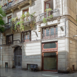 El local se sitúa en los bajos de un edificio de viviendas construido en el año 1900 en el barrio de Ciutat Vella de Barcelona. Desde la plaza se accede a la escalera de vecinos ubicada en una posición central del edificio y ésta ventila a un patio adyacente. El local resultante rodea el núcleo compuesto por la escalera y el patio generando un espacio en planta baja en forma de U.
