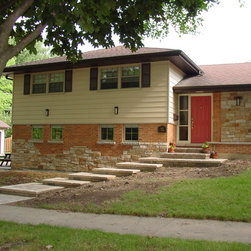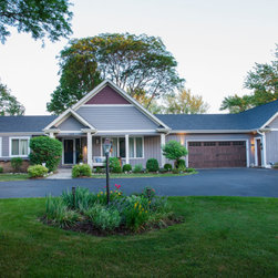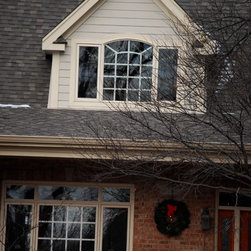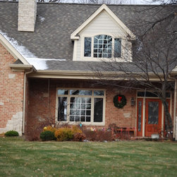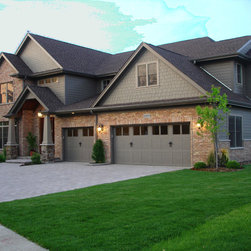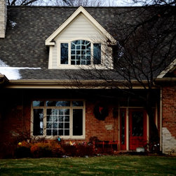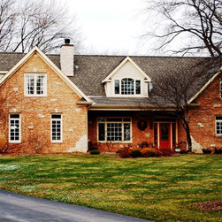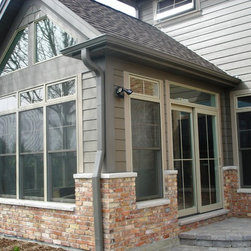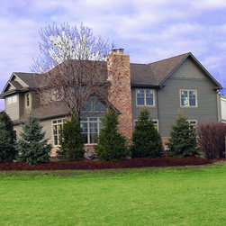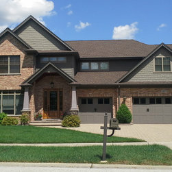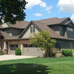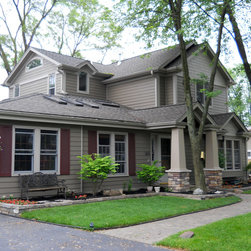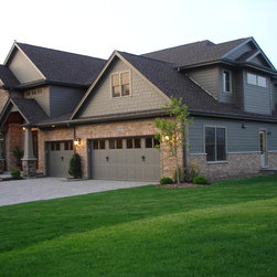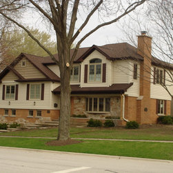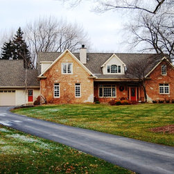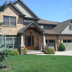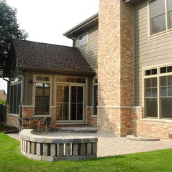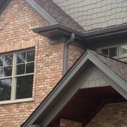 Brian Koch New Construction 2 story House w/ Sun room breakfast nook, Reclaimed Chicago Common Brick w/ James James Hardie Siding Color is Timber Bark JH40-30 and the Shakes are Monterey Taupe JH40-20 Cement Board Siding.
