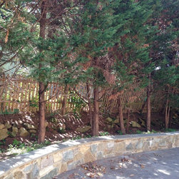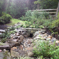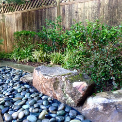 Before: Gravel walk with beautiful boulders and plantings