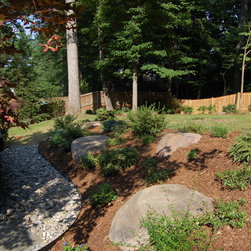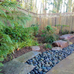 After: Gravel walk with beautiful boulders and plantings