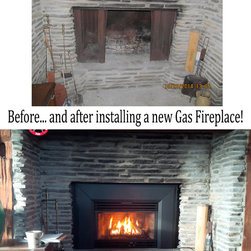 Updated the customers wood burning fireplace to a propane gas insert Kingsman Fireplace.