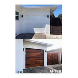 Before & After Planks Garage Door in Dark Oak