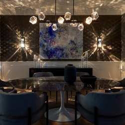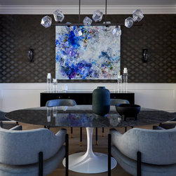 Throughout the home, art played a defining role — adding depth, color, and personality while connecting each space through tone and theme. Classic modern furnishings, sculptural lighting, and a mix of tactile materials give the entire residence a timeless yet current edge.