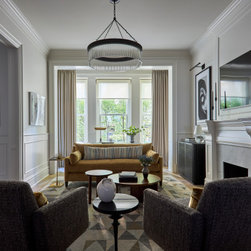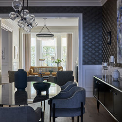 Set within Chicago’s prestigious Gold Coast neighborhood, this four-story brownstone was transformed from a traditional townhouse into an elegant, modern retreat. The design approach honored the building’s historic architecture while introducing a contemporary sensibility through contrast, texture, and materiality. Each room was thoughtfully curated to balance comfort with elegance: a cozy living room designed for conversation and work, a moody dining room wrapped in charcoal grasscloth, and serene guest suites offering hotel-like amenities and privacy.