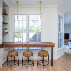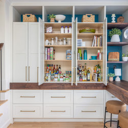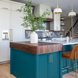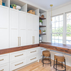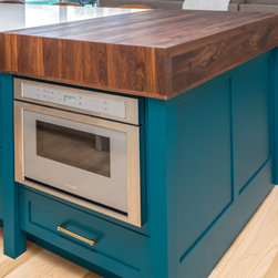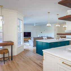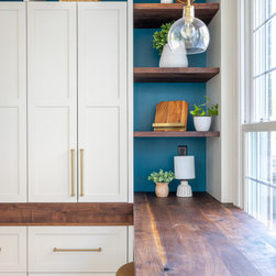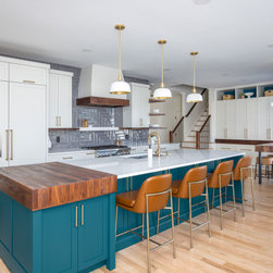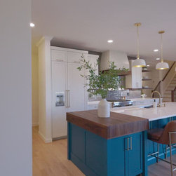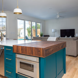 This was a fantastic project with awesome clients! This family of four loves life to the fullest and wanted a space that they could fully enjoy as well. Richard immediately set to draw floor plan that would allow them a more open concept with ample storage and seating overlooking their pool and outside entertaining area. The homeowner has an artistic side herself and picked an awesome island and accent color that would pop and make it her own- Benjamin Moore Pacific Ocean Blue. The husband is a woodworker hobbyist and together they chose a warm, rich wood tone to compliment the space.