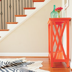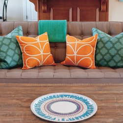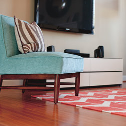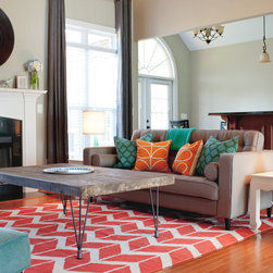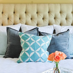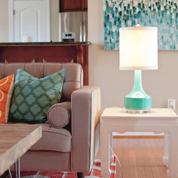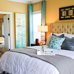 A fun "reveal-style" project on partial first floor of local home. The young client's request was for lots of color and a fresh modern look. She wanted the screened-in porch to provide some privacy and to add color to existing furniture. Her request for the bedroom was for it to be "like a hotel." They love it!