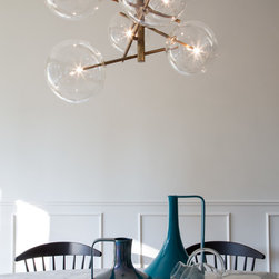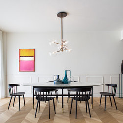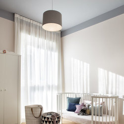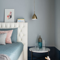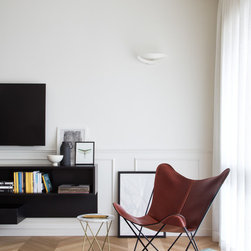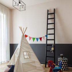 Le pareti con la boiserie rendono gli ambienti eleganti ma mai opprimenti. Le pitture distribuite a fasce creano delle scatole ulteriori nelle camere, regalando tocchi classicamente contemporanei, chic e leggiadri.