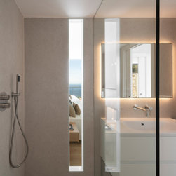 The shower, with a fixed glass wall, offers a unique experience: bathing with the sea as your travelling companion. The master bedroom, open and minimalist, allows the horizon to become the absolute protagonist.