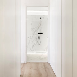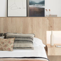 The wardrobes are perfectly integrated into the architecture, acting as room dividers, storage and even decorative elements.