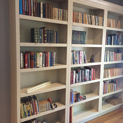 Custom bathroom vanity and matching framed mirror with happy customer taking the